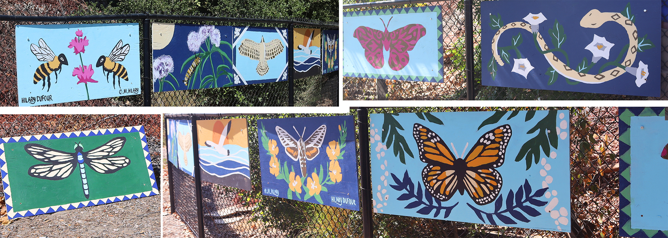 These wood panels were designed for an SDG&E volunteer event with the San Diego Riverpark Foundation. They honor local plant and animal species. Over 4 hours, volunteers at Mast Park painted in the designs after I had outlined them.